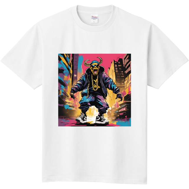 ストリートに君臨したバッファローボス 圧倒的な存在感を描きました。 BACKには野獣(バッファローボス)が この街を支配すると英文にしました