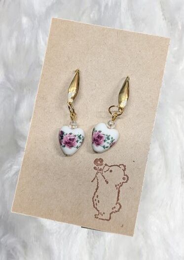 ハンドメイドピアス  ステンレス 陶器ビーズ